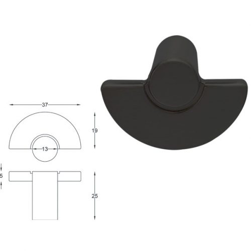 Πομολάκι επίπλων οβάλ τετράγωνο Μαύρο Ματ 37-7/26