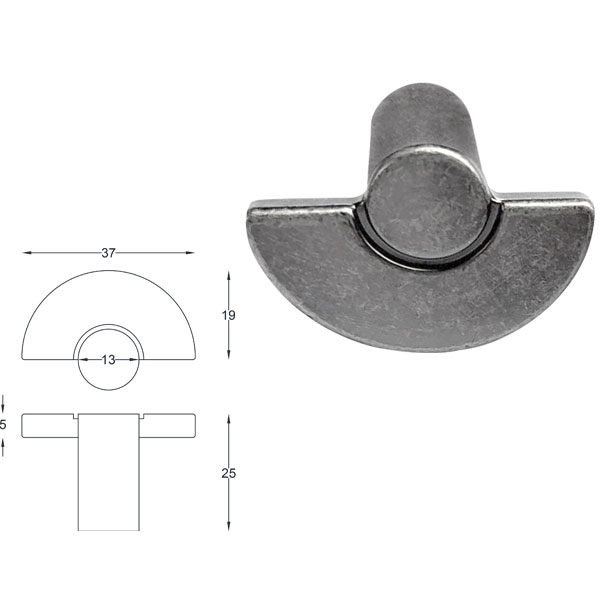 Το πομολάκι επίπλου διαθέτει σύγχρονη και κομψή σχεδίαση σε ημικυκλικό σχήμα λαβής και κυλινδρική βάση. Είναι κατασκευασμένο από εξαιρετικής ποιότητας υλικά και προσεγμένο φινίρισμα, σε απόχρωση ασημί αντικέ. Αποτελεί ιδανική επιλογή για όλα τα είδη επίπλου που διαθέτουν μοντέρνο ή κλασικό design.