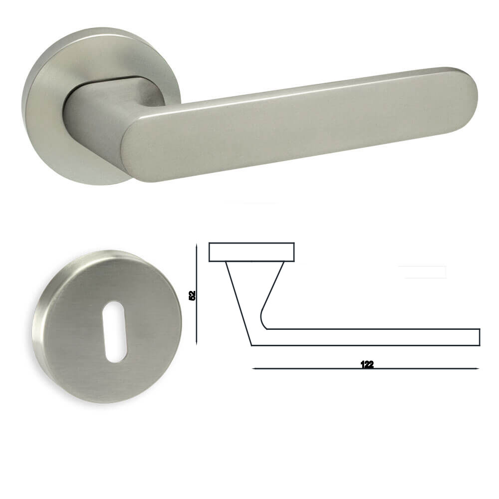 Το πόμολο εσωτερικής πόρτας με ροζέτα, θα εντυπωσιάσει και θα ανανεώσει τον χώρο σας χάρη στον μοντέρνο σχεδιασμό του. Είναι κατασκευασμένο από άριστα υλικά σε νίκελ σατινέ απόχρωση που ταιριάζει σε κάθε είδους εσωτερική πόρτα.